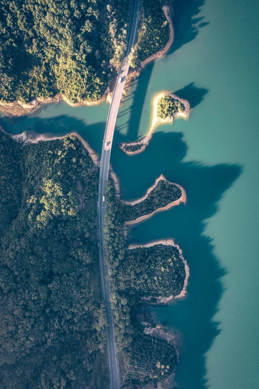 一路有:山林、溪流、水库